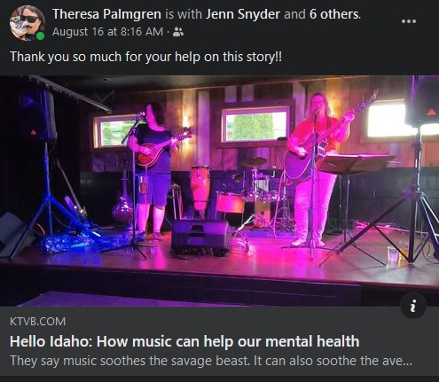 My friends Jenn Snyder and Meghan Watters recently played a benefit concert for a friend who had unexpectedly lost her brother. The concert helped with funeral and medical expenses. KTVB was there doing a story on the importance of music.